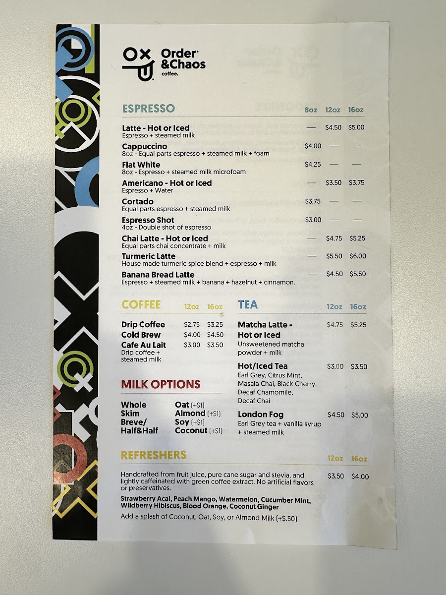 Order & Chaos Coffee, located at 1410 Key Hwy in Baltimore, MD, has quickly become a beloved coffee destination. Known for its inviting atmosphere and friendly staff, this coffee shop offers a concise yet flavorful menu that caters to various palettes.